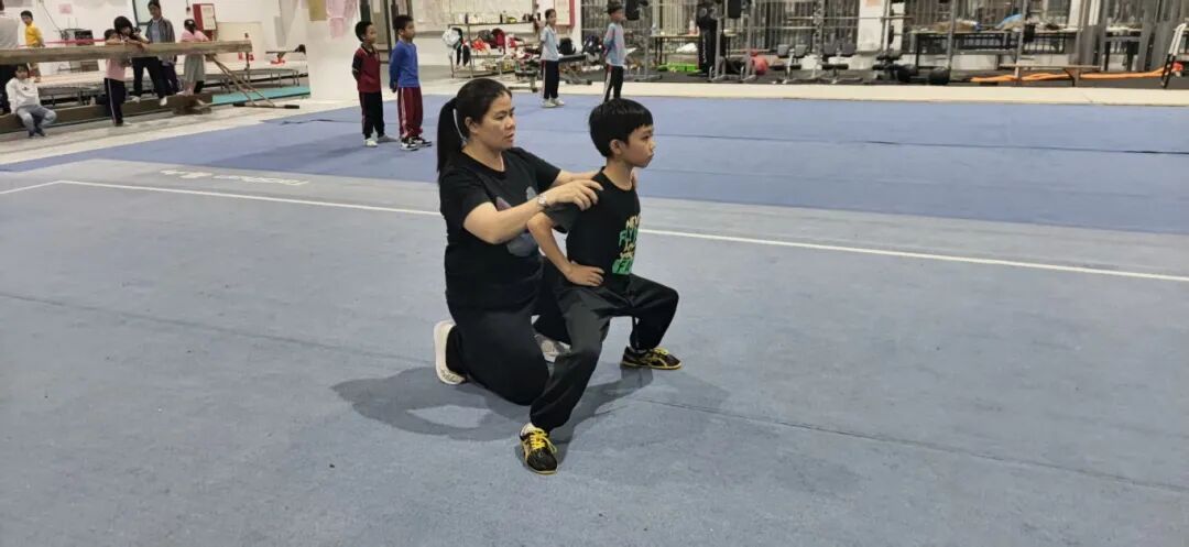 在指导学生时,她眼神专注,耐心且细致。她精准地调整着每个孩子的肢体位置,不放过任何一处细节偏差,以精益求精的态度,确保每一个动作都准确到位。她将对中华武术的热爱与严谨的执教风格融入每一次训练,助力学生在武术之路上稳步前行。
