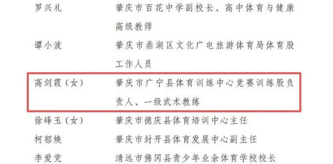 广宁武术教练高剑霞荣获“2021-2024全国群众体育先进个人”